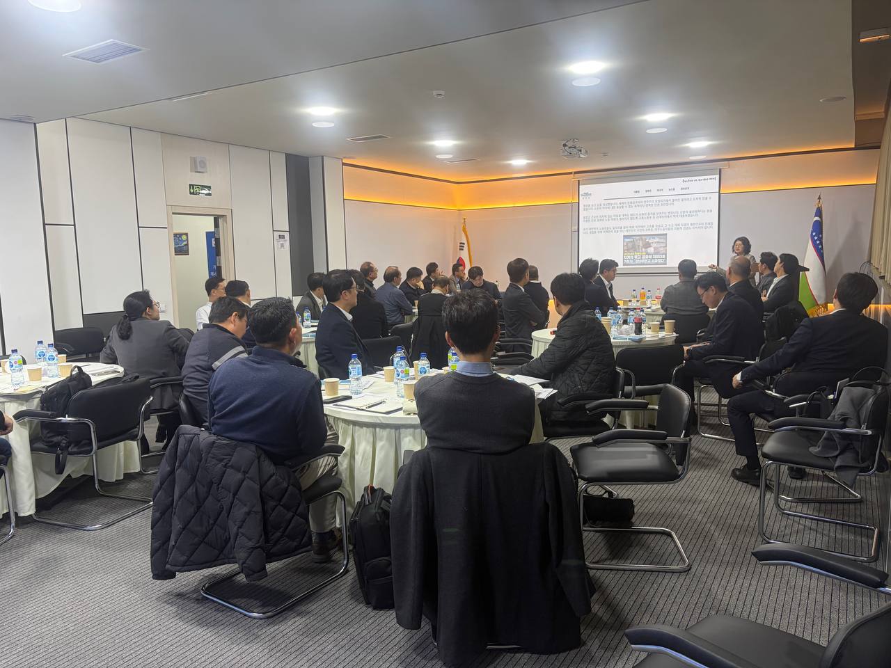 이 날 원도연 대사는 모두발언을 통해 금년 한-중앙아 정상회의라는 중요한 행사를 앞두고 △우리 기업이 희망하는 ADB, WB 등 프로젝트 참여방안 협의, △우 투자부를 통한 기업애로 해소, △우리 기업 노무관리 유의사항 안내 등을 위해 이번 협의회를 마련했다며 구체 성과 발굴의 초석이 되길 바란다 하고, 우리 대사관도 기업인들의 신규 프로젝트 발굴 및 수주 등을 정부와 함께 적극 지원하겠다고 밝혔습니다.